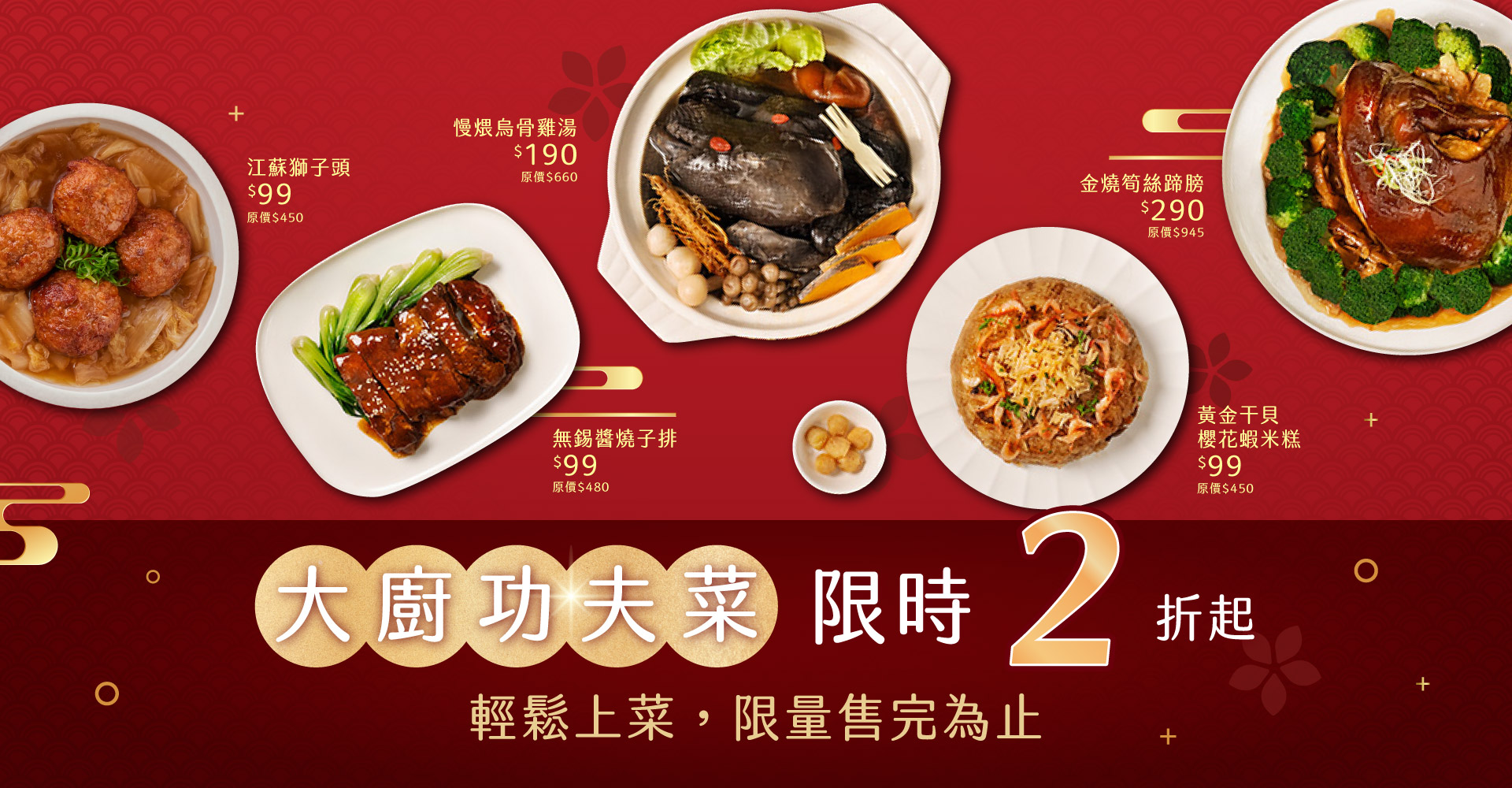 50年中菜真功夫,李璐老師代言監製 濃郁鮮美,上海醃篤鮮 入口即化,無錫醬燒子排 獨門醬汁,江蘇獅子頭 鹹香融合,黃金干貝櫻花蝦米糕 提供大廚擺盤訣竅,簡單步驟親手打造江浙功夫菜