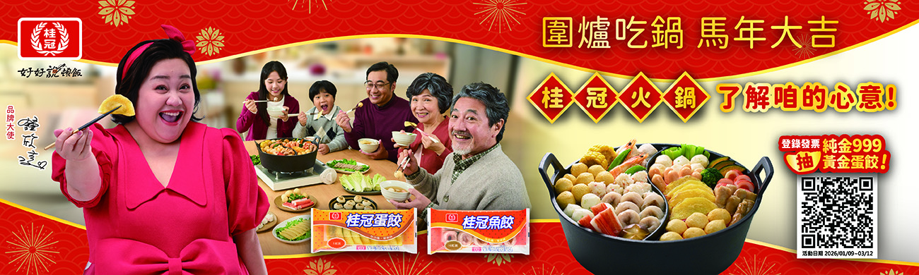 單筆發票購買桂冠火鍋料/冷凍火鍋湯底任3件,登錄發票抽純金999黃金蛋餃!