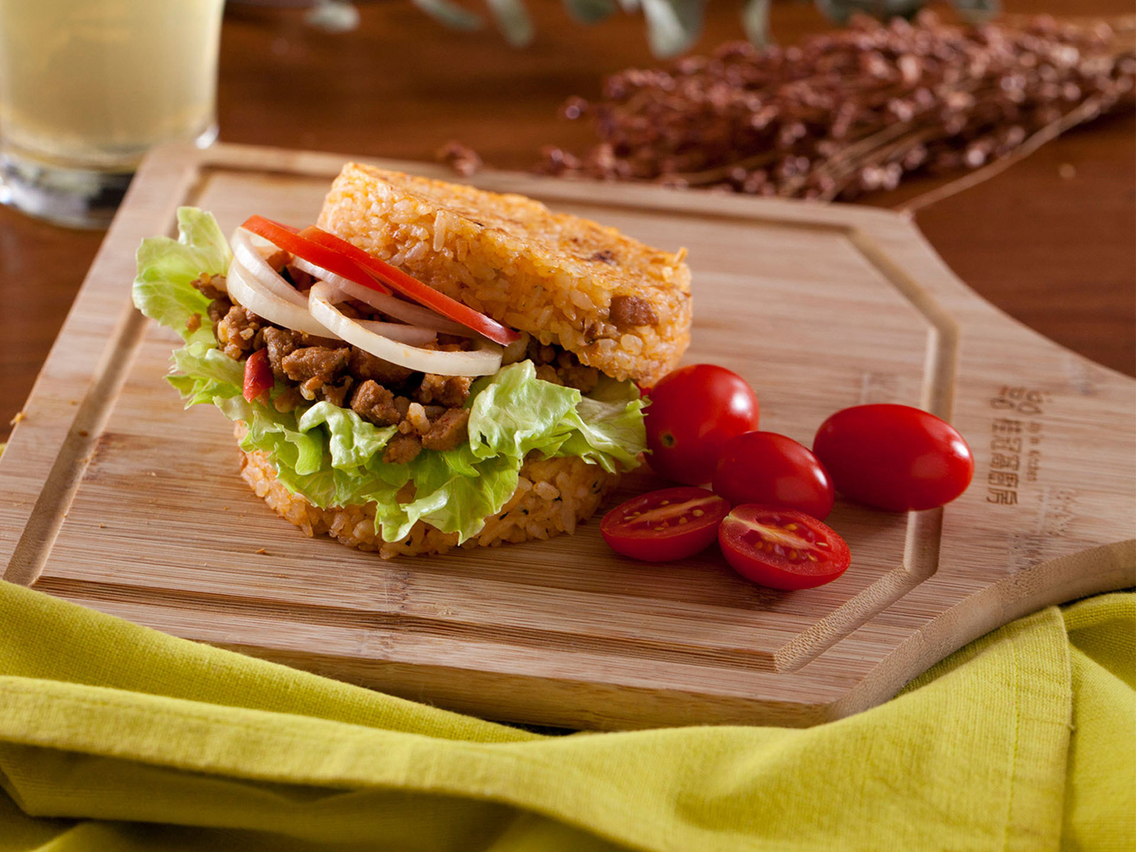 泰式料理怎麼可以錯過打拋豬,將打拋豬製作成創意《泰式打拋米漢堡》