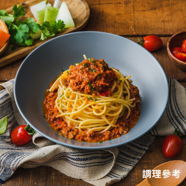 遵循義大利傳統製程,細火慢燉蕃茄、洋蔥等蔬菜做基底,加入炒香的牛豬混合絞肉提升香氣,自行搭配義大利麵條,道地義式料理輕鬆在家享用。