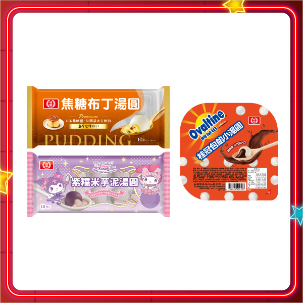 商品內容(固定組合):紫糯米芋泥湯圓*1+焦糖布丁湯圓*1+阿華田湯圓*1