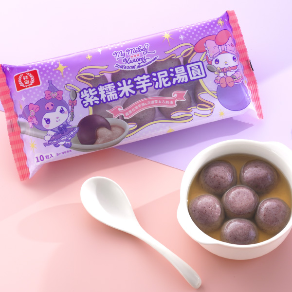 ✨桂冠紫糯米芋泥圓✨聯名三麗鷗爆紅明星嚴選100%台灣檳榔心芋製成內餡加入法國蒙太古奶油與日本島砂糖搭配以台灣契作的紫糯米Q彈外皮一口享受輕甜濃郁頂級芋泥美味~