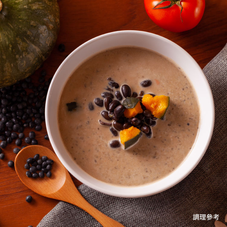 綿密的南瓜口感,吃的到黑豆顆粒,滿滿的奶香帶點咖哩點綴,喝起來有飽足感,奶素可食且營養滿分!