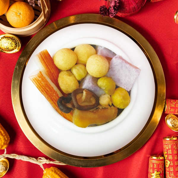 水、排骨酥(排骨、酥炸粉(小麥澱粉、樹薯澱粉)、棕櫚油)、白菜、筍片(筍、水、鹽)、炸芋頭(芋頭、棕櫚油)、豬肚、黃金魚蛋(魚漿、水、鹽、澱粉、