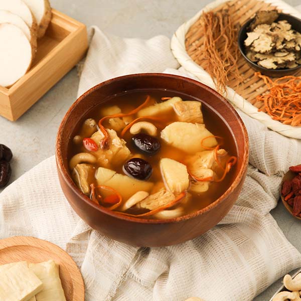 ※山藥蟲草花腰果湯、人蔘糯米栗子湯因添加大豆胜肽,飲用時有些微苦味為正常現象