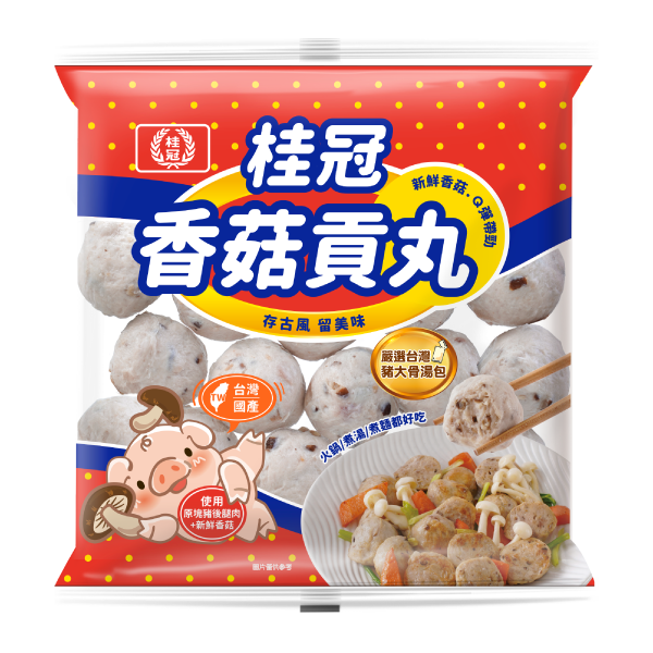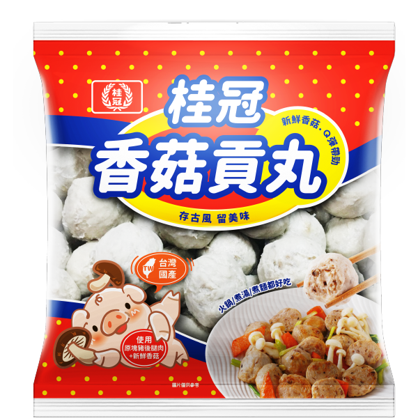 桂冠香菇貢丸堅持傳統製法精神,加上香菇,以豬肉捶打而成,吃起來超有彈性的。