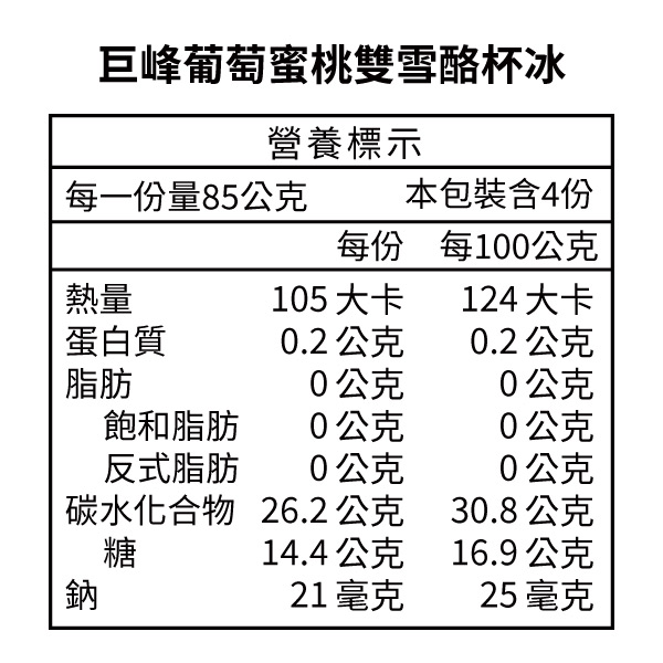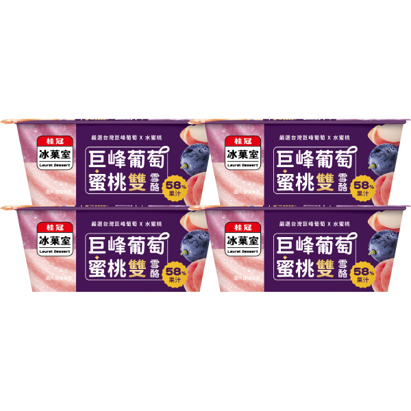 果汁含量58%!一半選用巨峰葡萄製成的雪酪,香甜濃郁;另一半是蜜桃,超高果汁含量,一杯雙享!不含牛奶成分,每一口都能感受到果實的鮮美與自然香氣,雪酪質地細緻滑順, 讓每一口都充滿驚喜與幸福感!