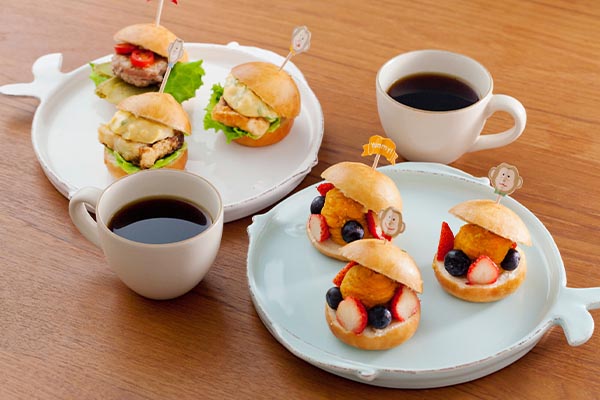 (1)鹹漢堡:包子夾入魚肉、絞肉、蔬菜、起司、酸黃瓜、洋蔥末 (2)甜漢堡:奶皇包擠上地瓜、擺上水果