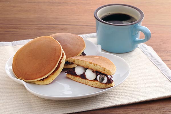 煮熟芝麻小湯圓並瀝乾水分,將銅鑼燒餅皮夾入蜜紅豆餡、芝麻小湯圓即完成