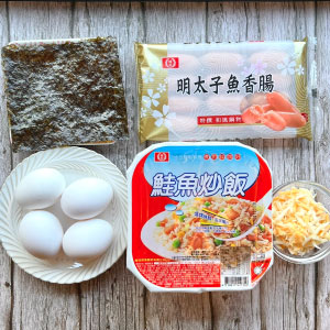 準備食材,並桂冠鮭魚炒飯加熱備用。